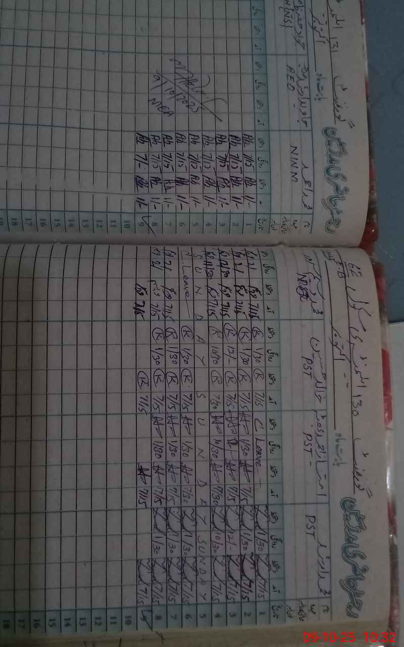 | CNIC | Full Name | Designation | R/C | Absence During Last Calender Month |