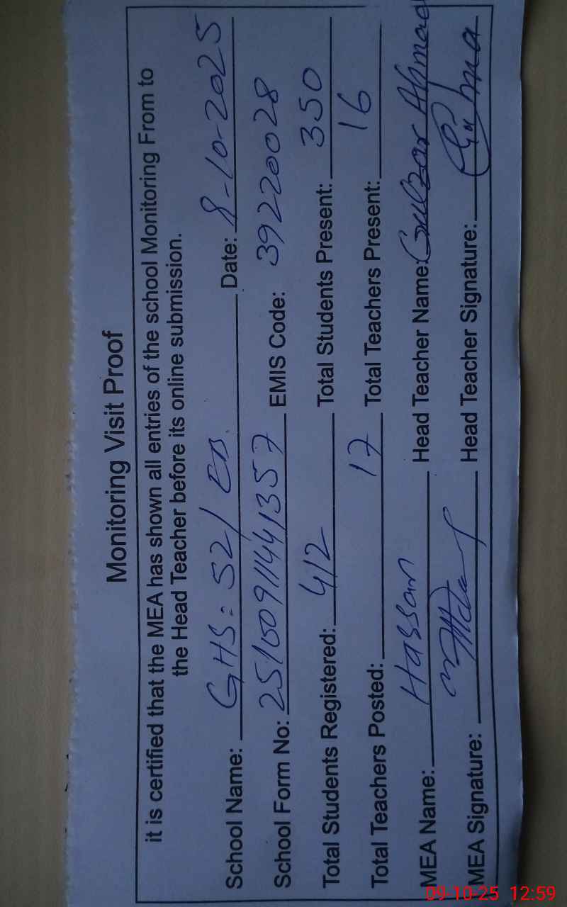 | EMIS Code: 39220028 | Name of School: GHS 52 EB | |||