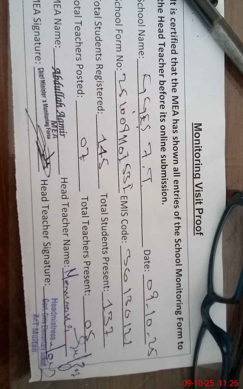 | EMIS Code: 36130121 | Name of School: GGES 7 T MULTAN | |||
