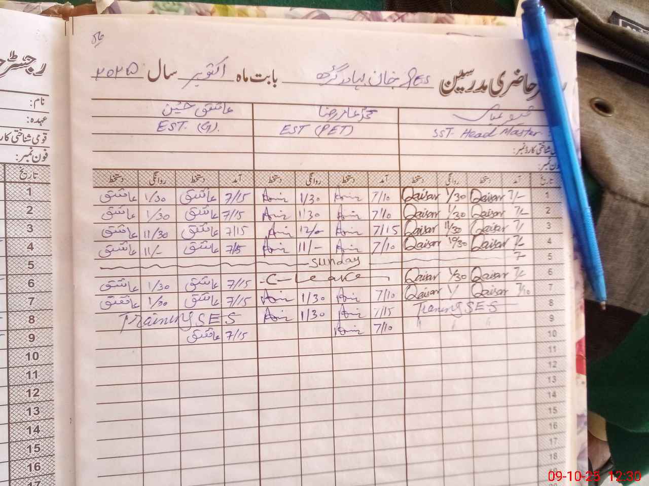 | 36**** | Qa**** Ab**** | SST | Regular | 0 | 0 | 0 | 0 | 0 | 0 | 0 | 0 | 0 | Exam Duty |