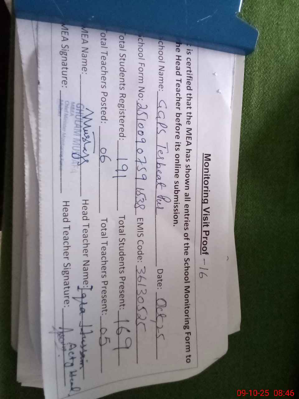 | EMIS Code: 36130525 | Name of School: GGPS TARBIAT PUR | |||