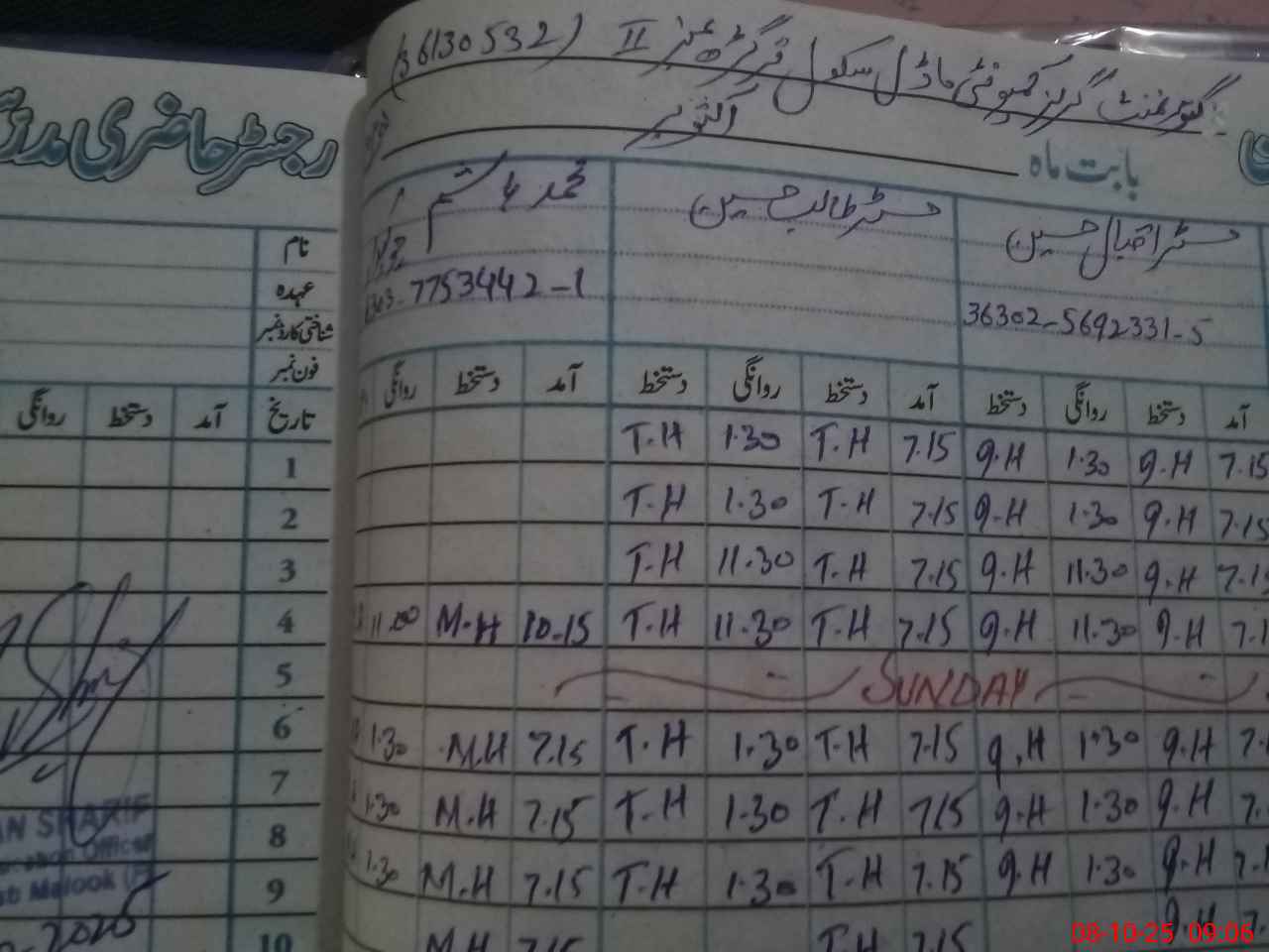 | Name: NA**** SU**** Designation: (School Headmaster's/Headmistress's) INCHARGE EST ARTS Phone/Cell Number: 03**** |