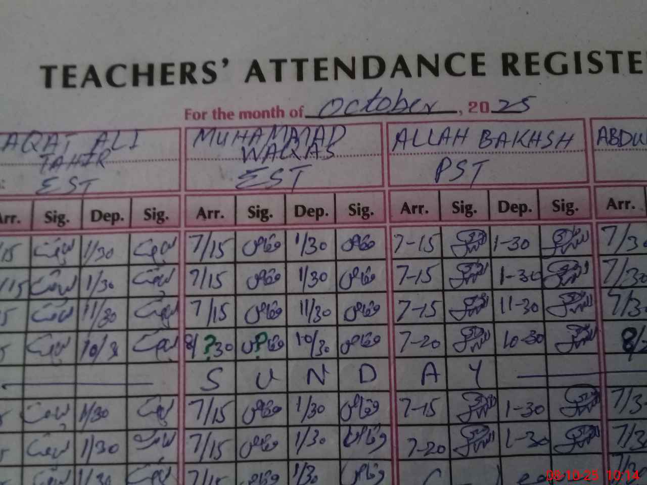 | CNIC | Full Name | Designation | R/C | Absence During Last Calender Month |