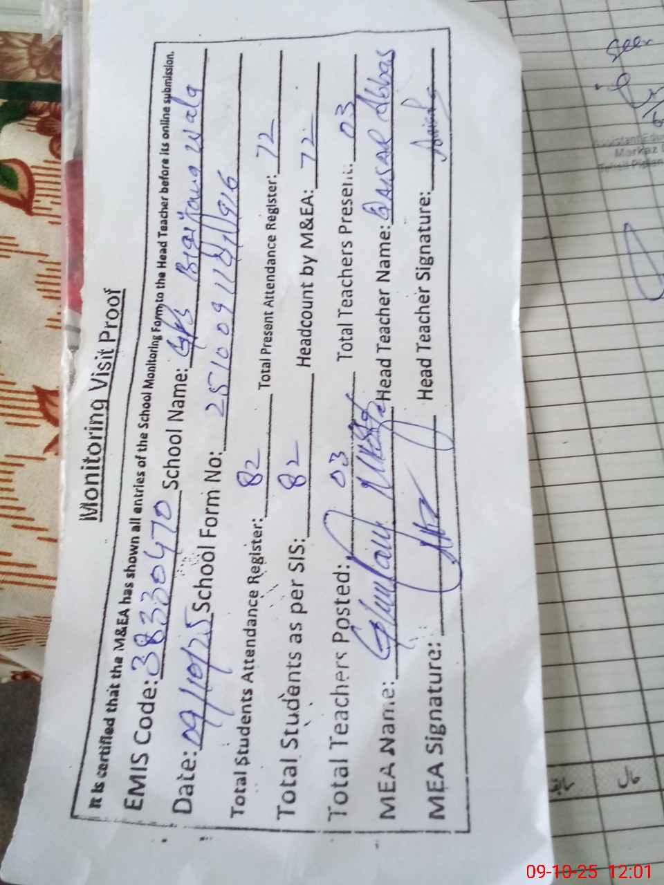 | Monitoring Date: 09-10-2025 | Start Time: 09-10-2025 11:41 AM | End Time: 09-10-2025 12:15 PM | Name of MEA: Gh**** Mu**** | |