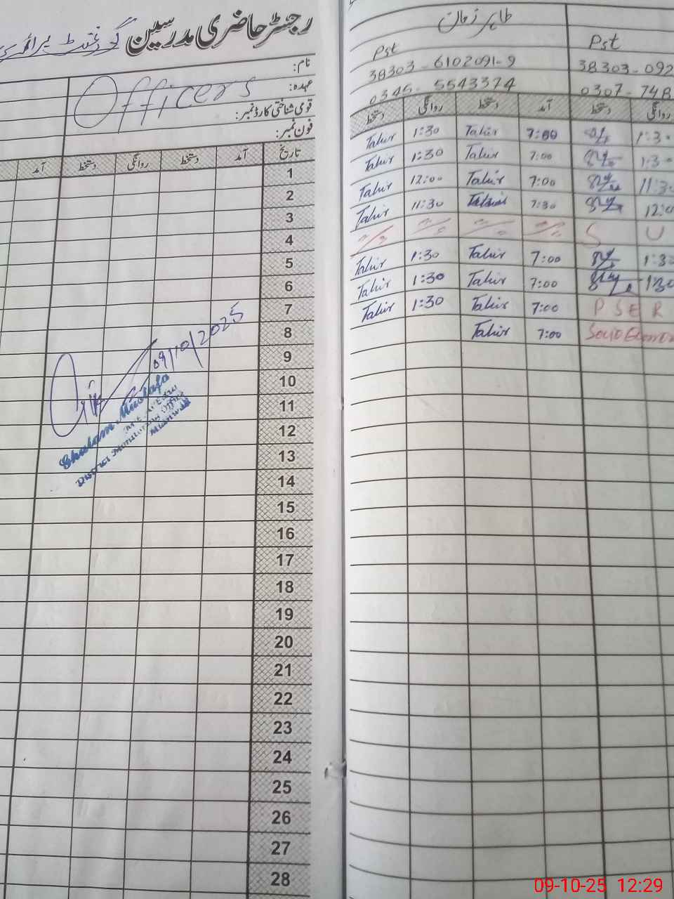 | Name: AK**** AB**** Designation: (School Headmaster's/Headmistress's) PST Phone/Cell Number: 03**** |