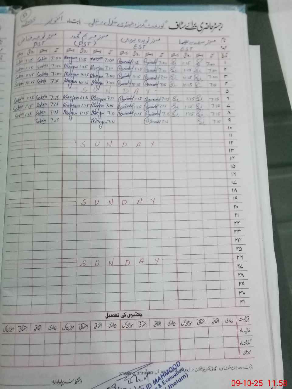 | CNIC | Full Name | Designation | R/C | Absence During Last Calender Month |