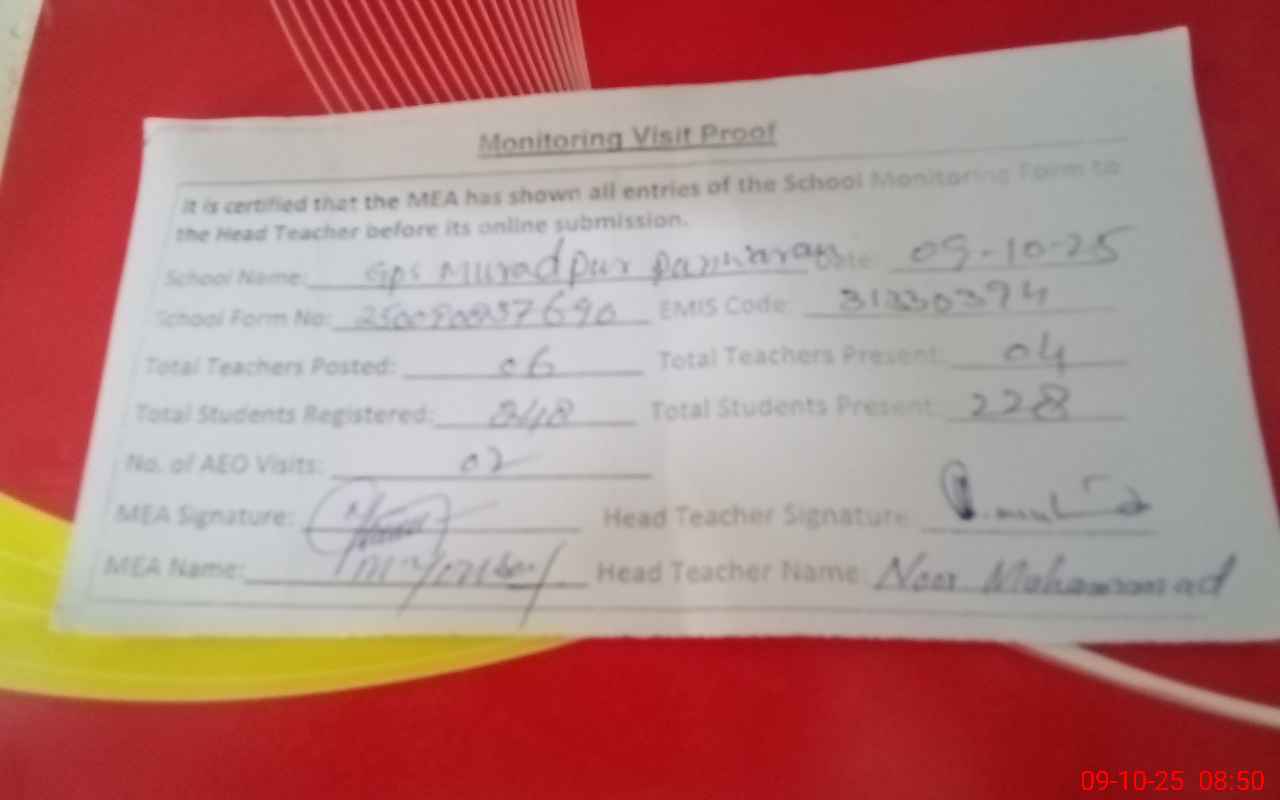 | EMIS Code: 31330394 | Name of School: GPS MURAD PUR PUNWARAN | |||