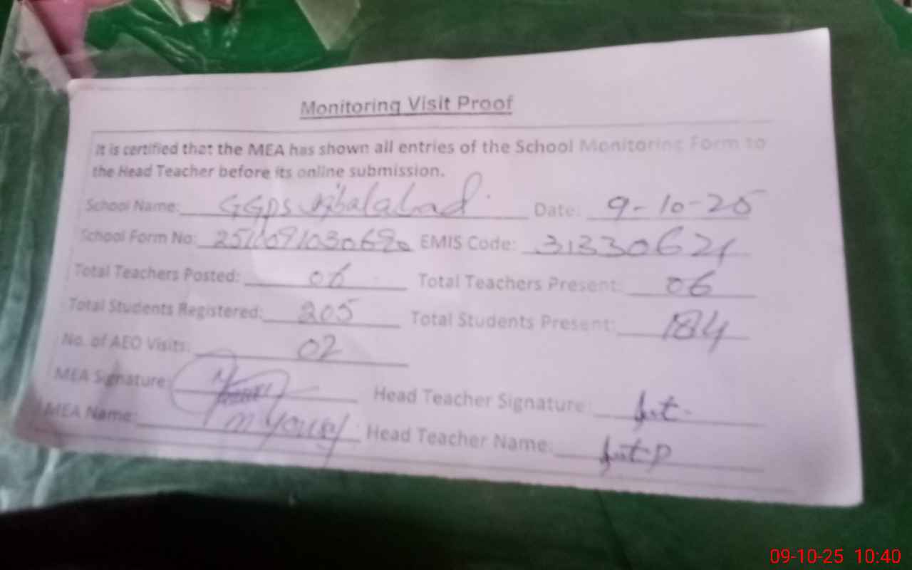 | EMIS Code: 31330621 | Name of School: GGPS IQBAL ABAD | |||