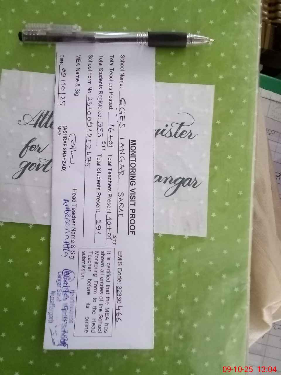 | EMIS Code: 32330466 | Name of School: GGES LANGAR SARAI | |||