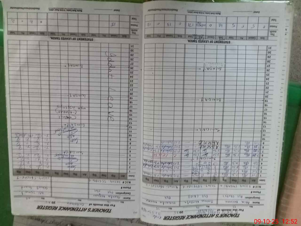 | 32**** | Sa**** Mu**** | 1 | 22 | 0 | 0 | 0 | 0 | 22 | 0 | 0 | 0 | Absent (Un-Authorized) | |