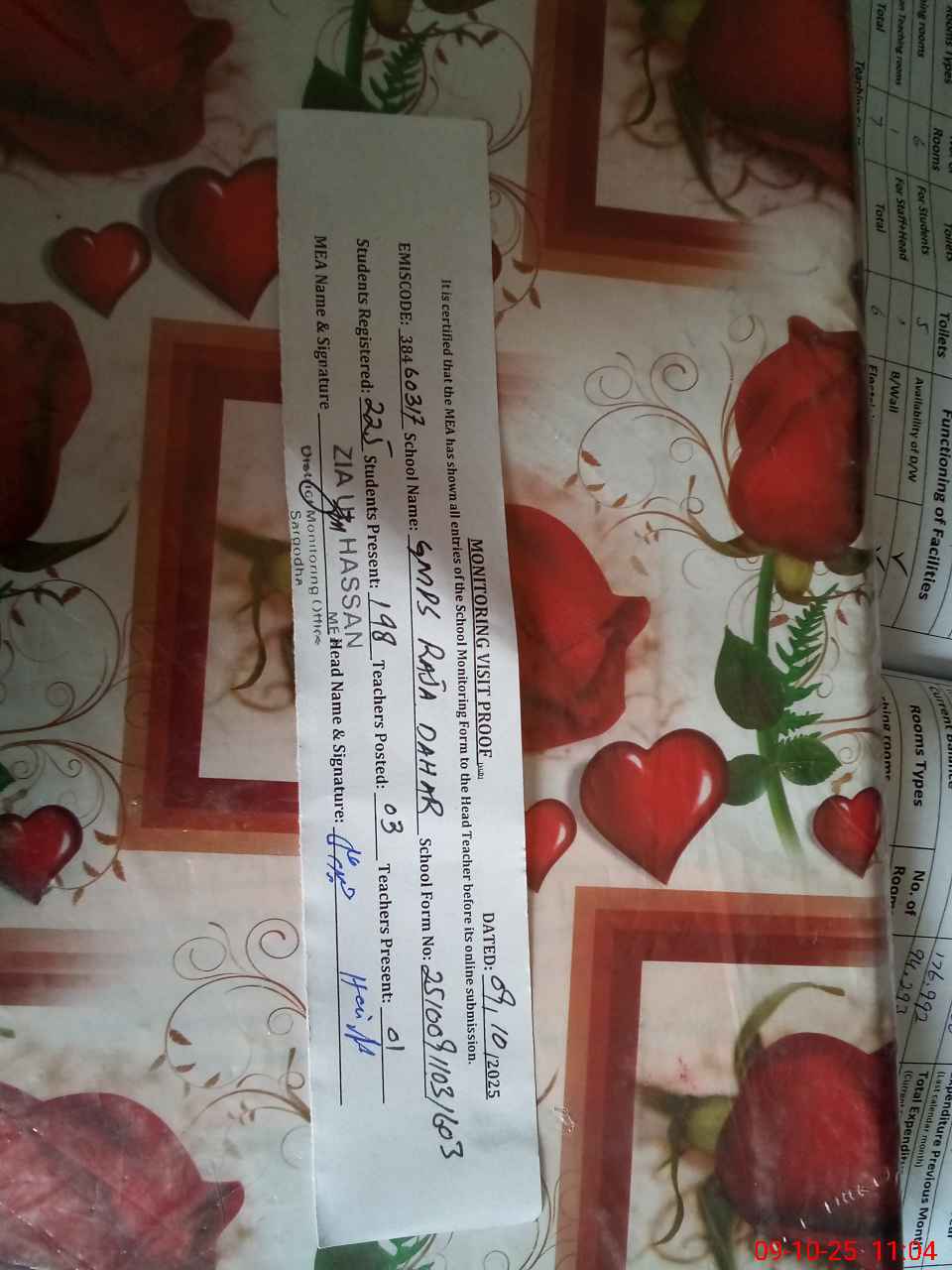 | Certified that this School was Inspected by the Undersigned MEA/DMO Today and the Information Stated Above is as Per Record. | |||||