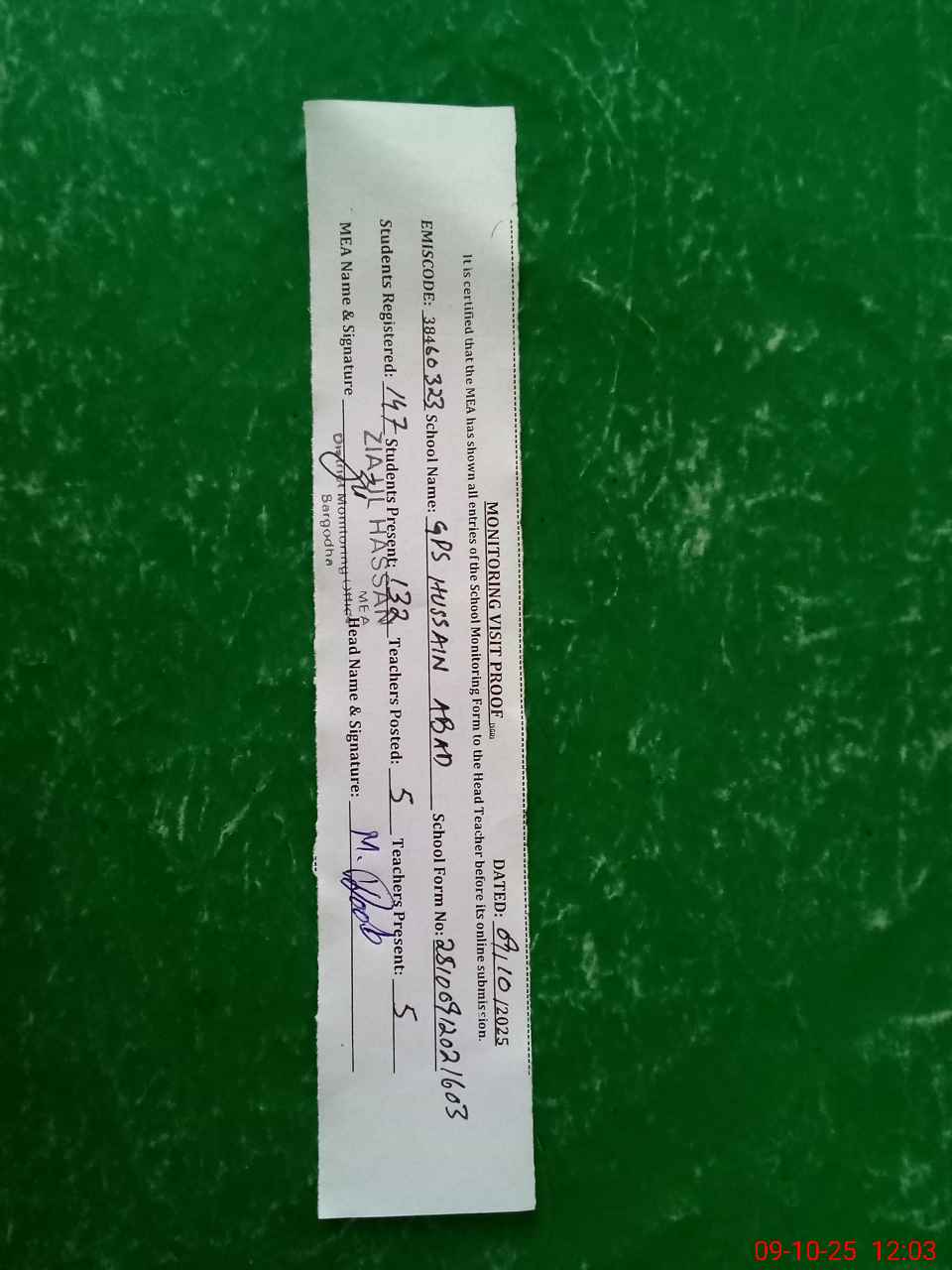 | EMIS Code: 38460323 | Name of School: GPS HUSSAIN ABAD | |||