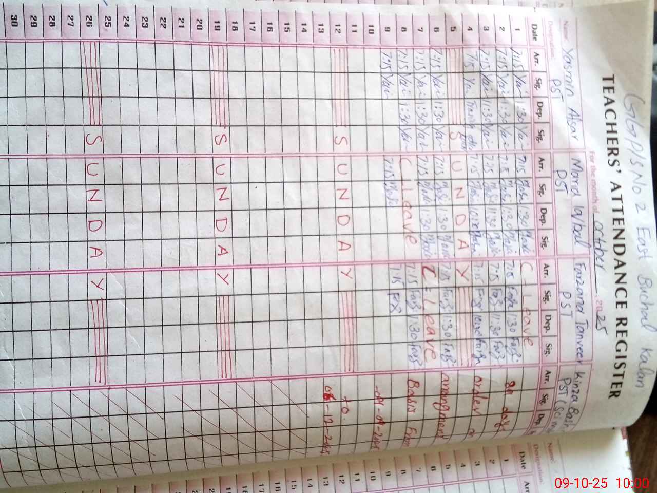 | CNIC | Full Name | Designation | R/C | Absence During Last Calender Month |