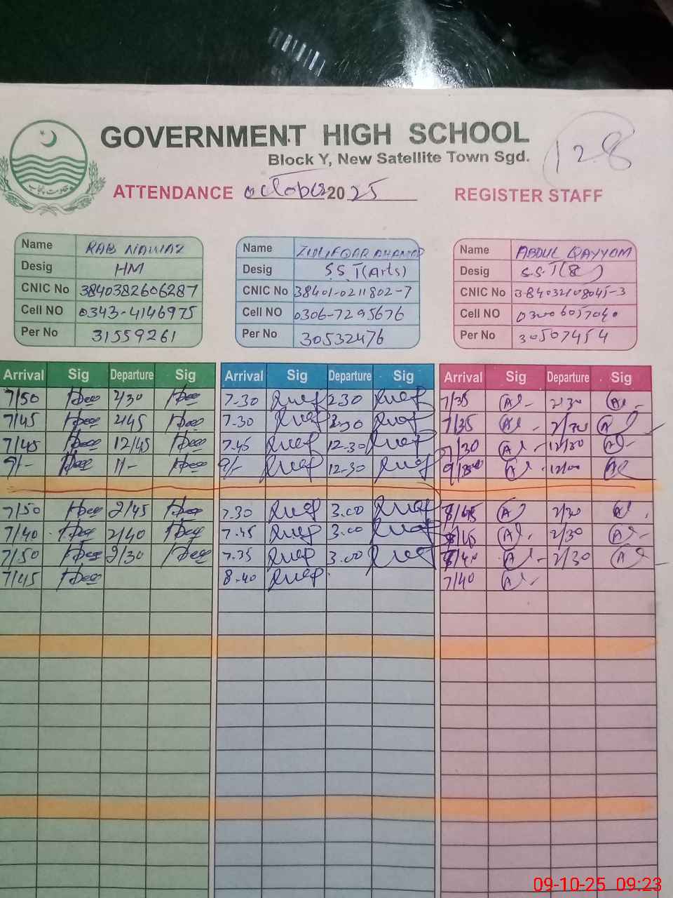 | Name: MU**** FA**** Designation: (School Headmaster's/Headmistress's) S.S.T.(arts) Phone/Cell Number: 03**** |