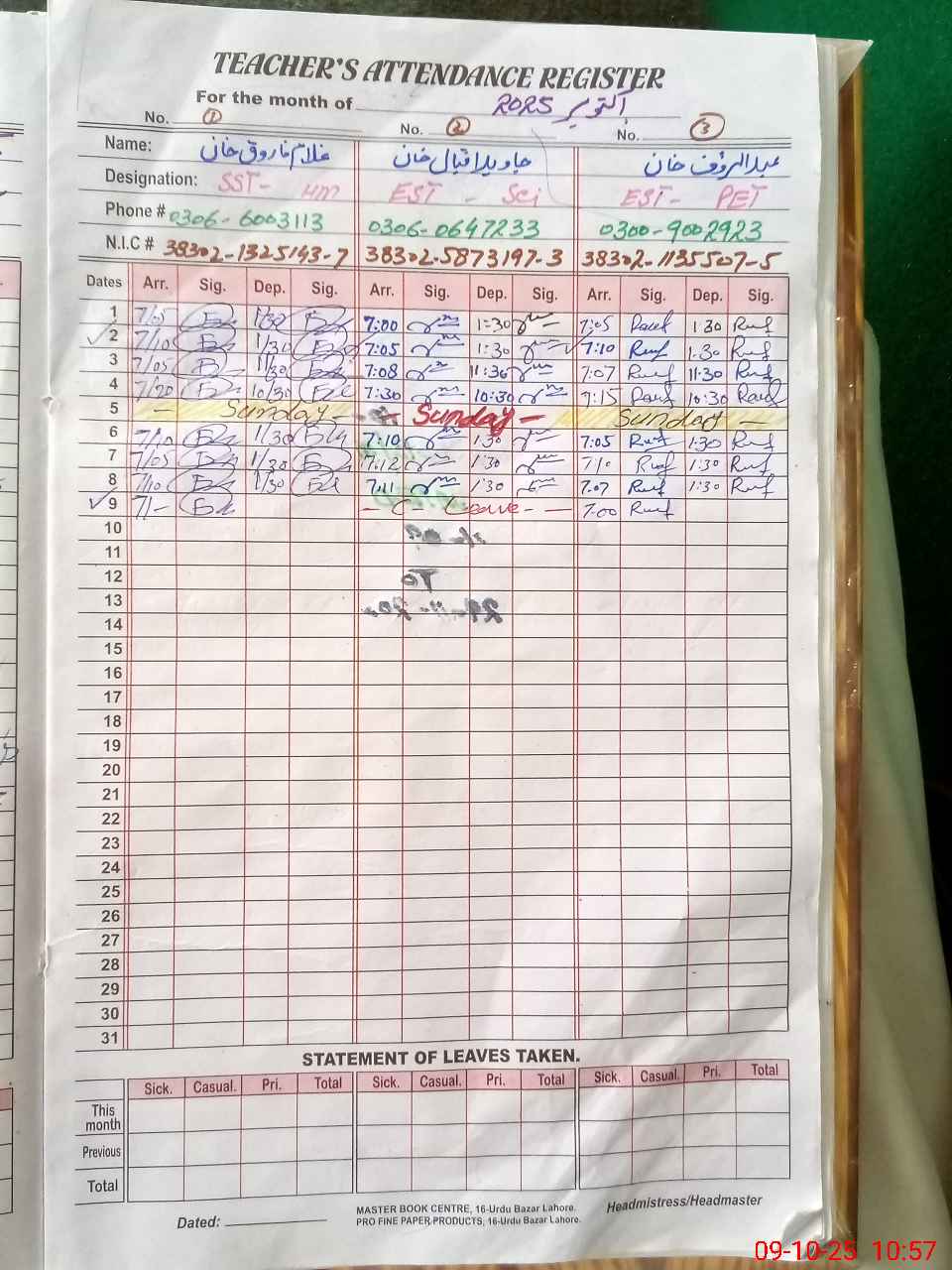 | Name: GH**** FA**** KH**** Designation: (School Headmaster's/Headmistress's) SST( SC ) Phone/Cell Number: 03**** |