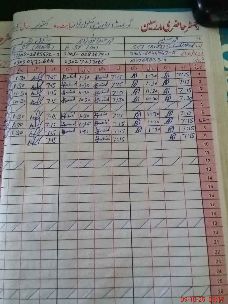 | Name: Mu**** Sa**** Designation: (School Headmaster's/Headmistress's) SST Phone/Cell Number: 03**** |