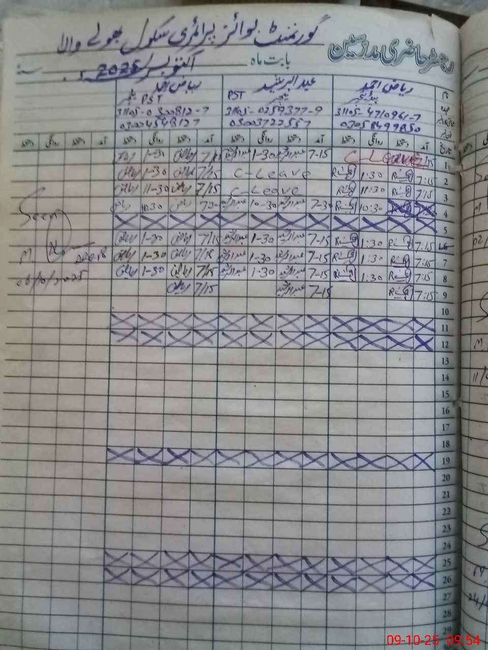 | Name: RI**** AH**** Designation: (School Headmaster's/Headmistress's) PST Phone/Cell Number: 03**** |