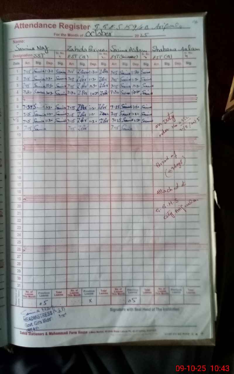 | Name: SA**** NA**** Designation: (School Headmaster's/Headmistress's) SST(GENERAL) Phone/Cell Number: 03**** |