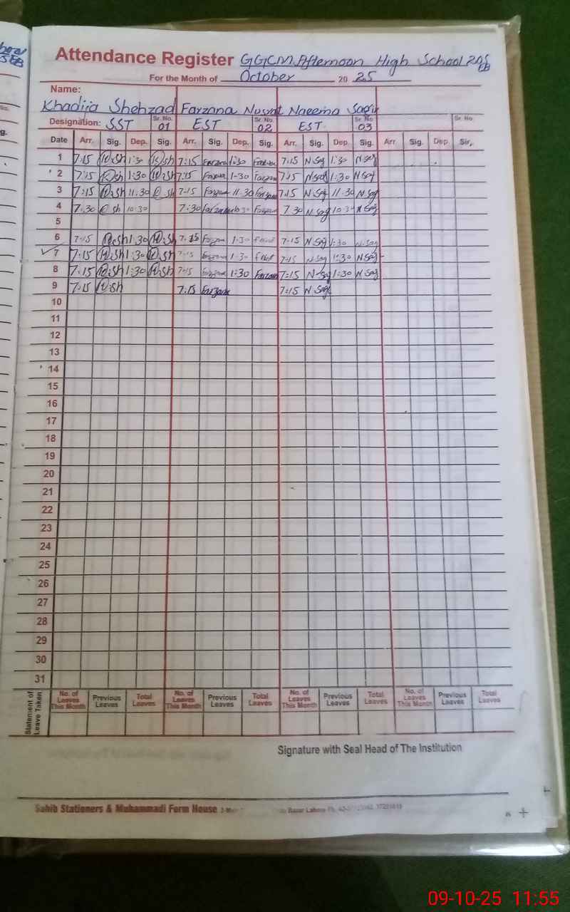 | Name: KH**** SH**** Designation: (School Headmaster's/Headmistress's) S.S.T.(GENERAL) Phone/Cell Number: 03**** |