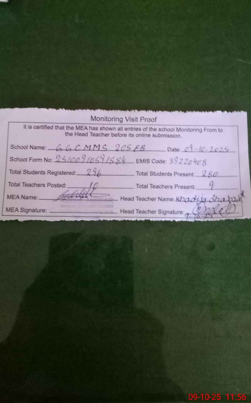 | Certified that this School was Inspected by the Undersigned MEA/DMO Today and the Information Stated Above is as Per Record. | |||||