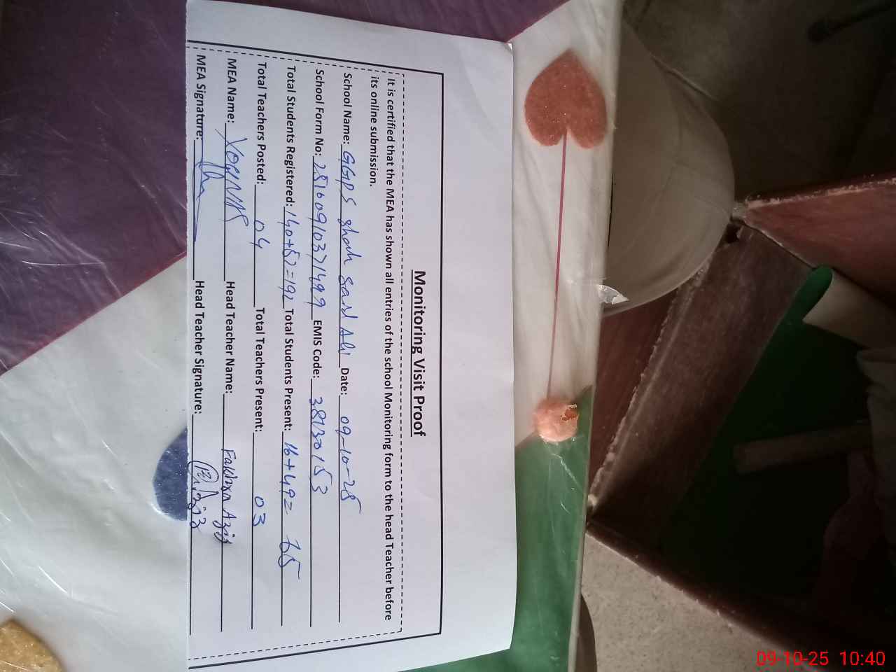 | EMIS Code: 38130153 | Name of School: GGPS SHAH SAID ALI | |||