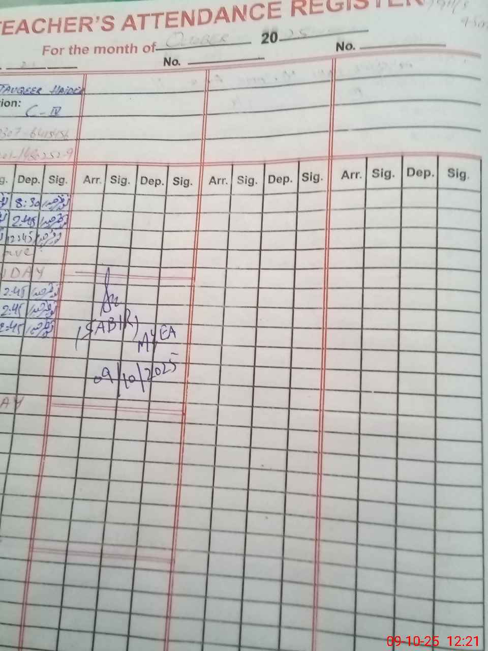 | CNIC | Full Name | Designation | R/C | Absence During Last Calender Month |