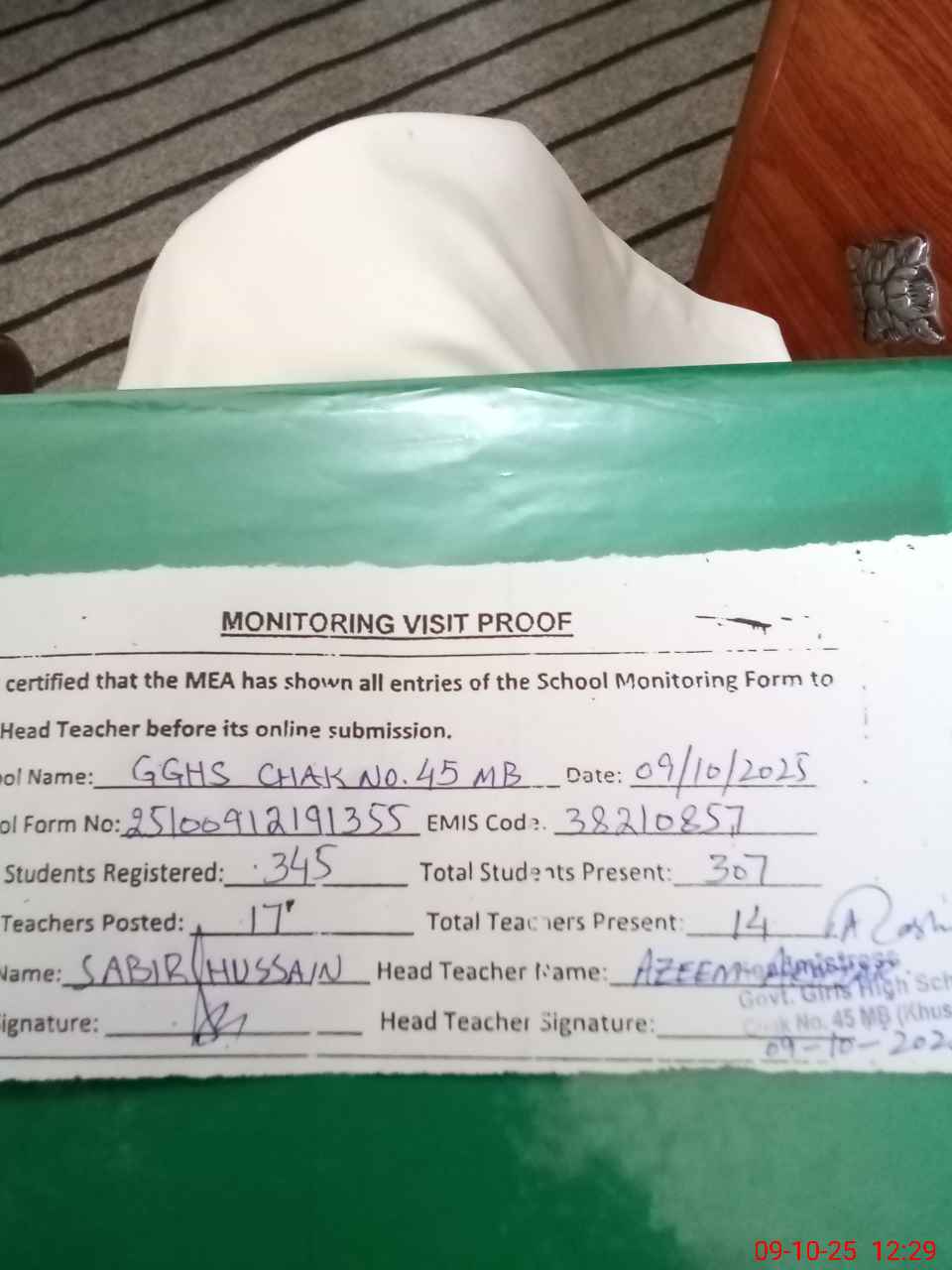 | EMIS Code: 38210857 | Name of School: GGHS CHAK NO 45 MB | |||