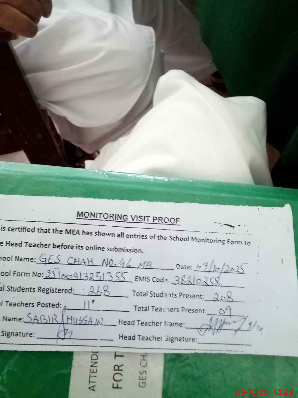 | EMIS Code: 38210258 | Name of School: GES CHAK NO 46 MB | |||