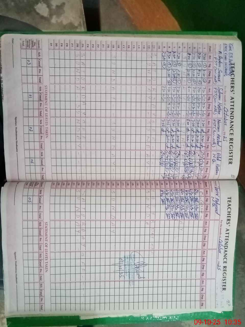 | Monitoring Date: 09-10-2025 | Start Time: 09-10-2025 09:58 AM | End Time: 09-10-2025 10:57 AM | Name of MEA: W-**** Ah**** | |