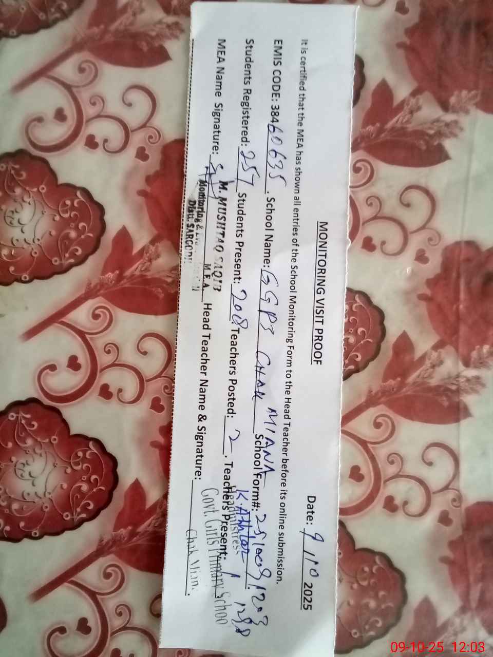 | EMIS Code: 38460635 | Name of School: GGPS CHAK MIANA | |||
