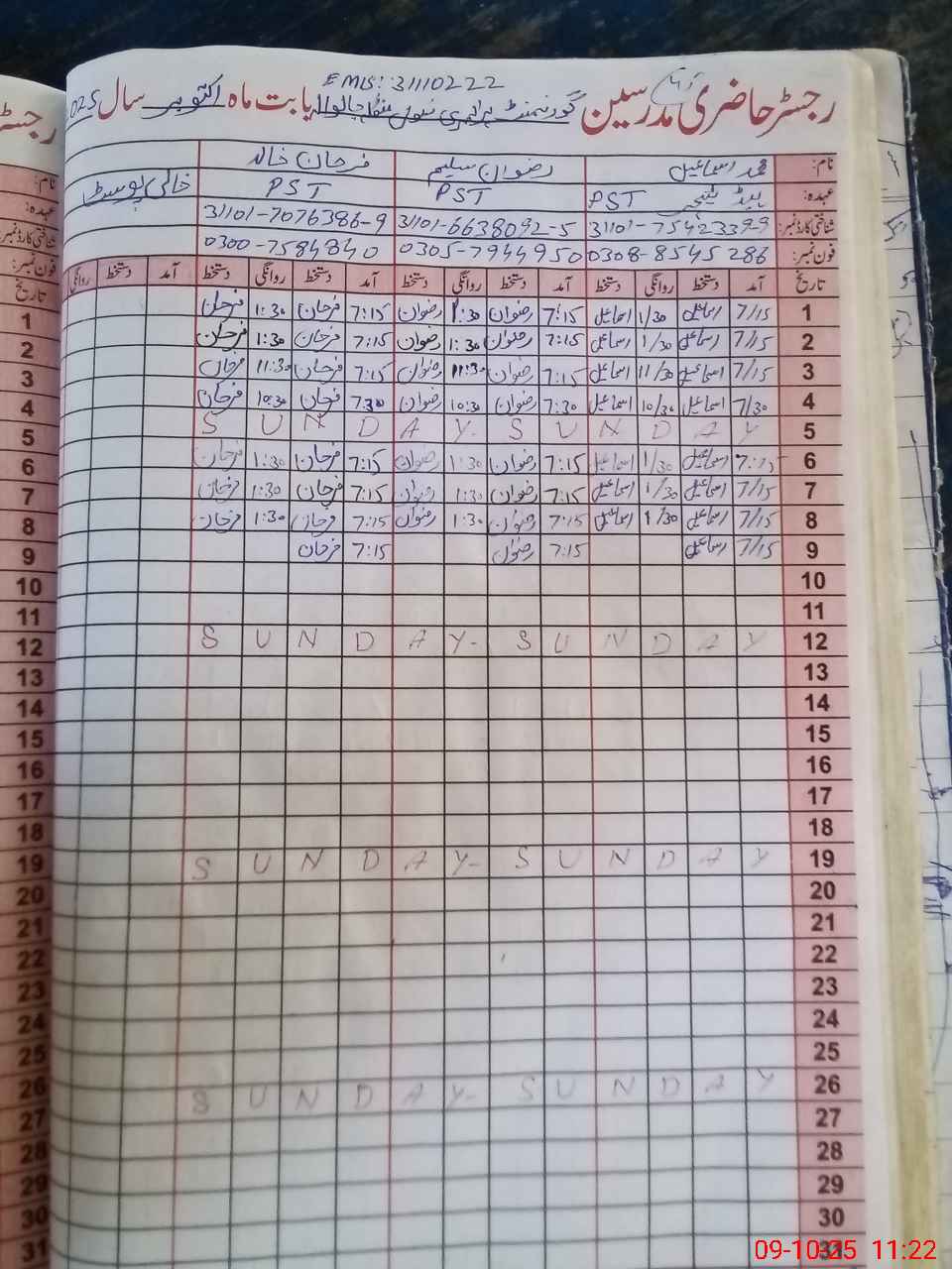 | Name: MU**** IS**** Designation: (School Headmaster's/Headmistress's) PST Phone/Cell Number: 03**** |