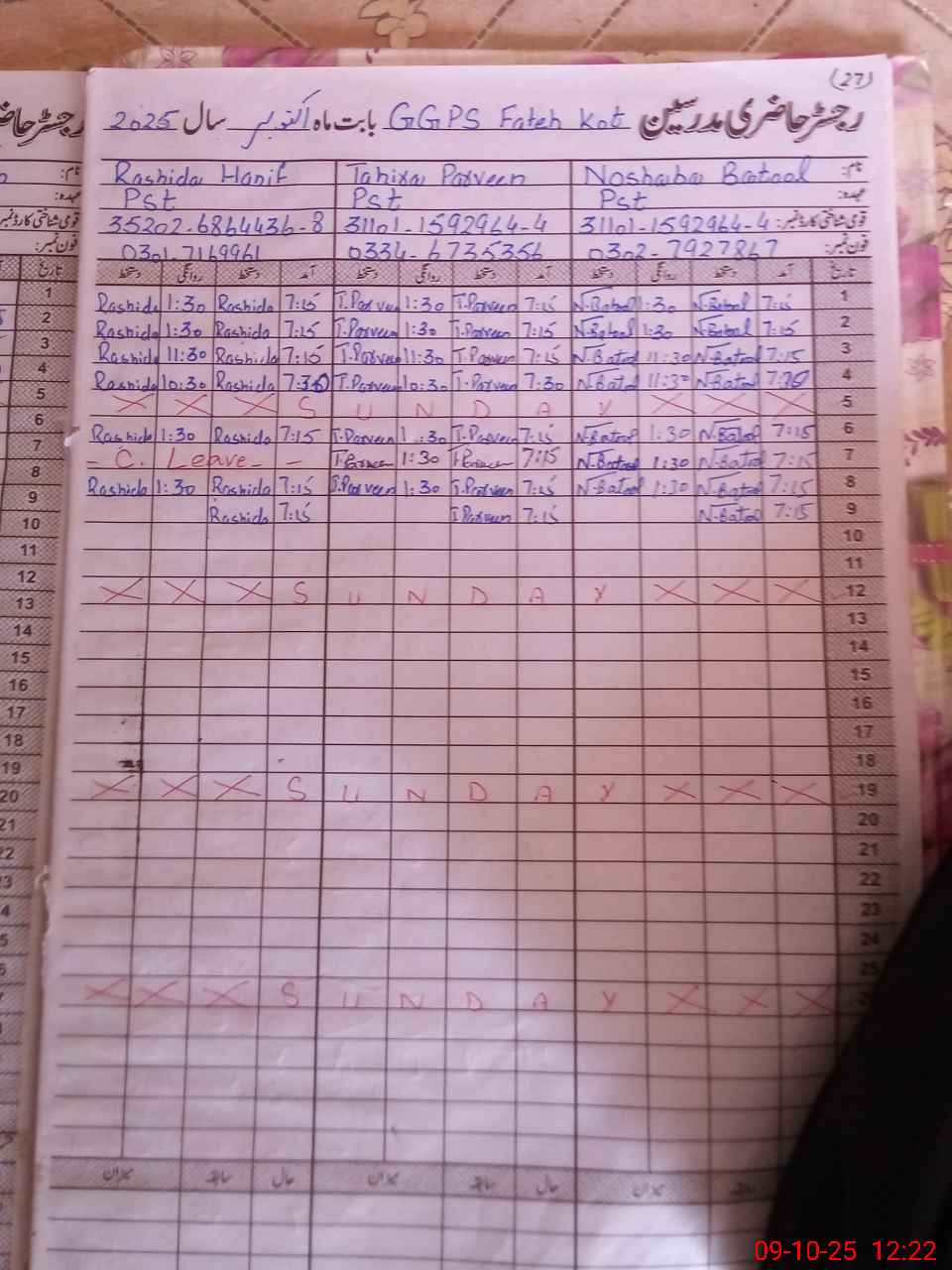 | Name: No**** Ba**** Designation: (School Headmaster's/Headmistress's) PST Phone/Cell Number: 03**** |