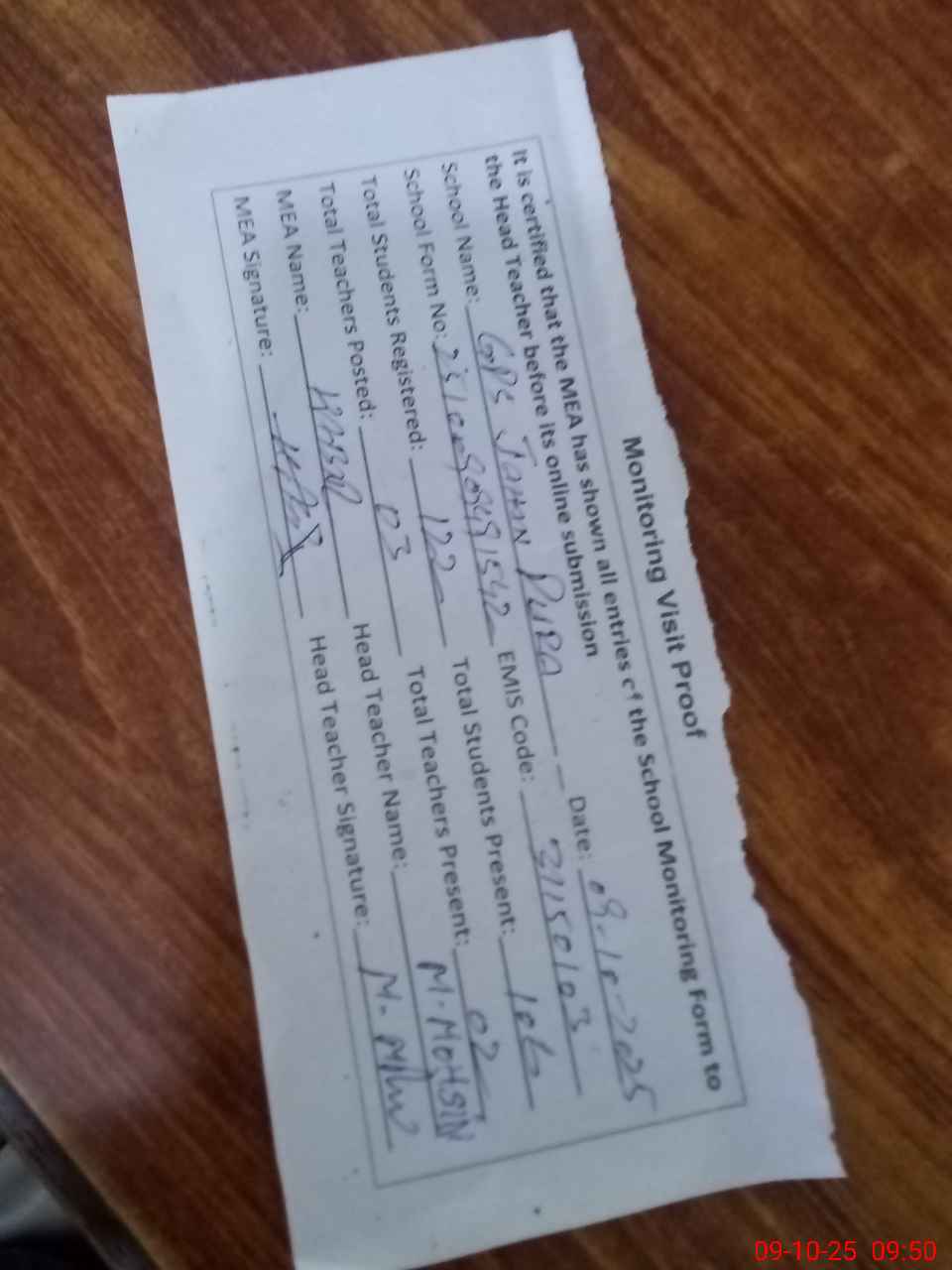 | EMIS Code: 31150103 | Name of School: GPS JAHAN PURA | |||