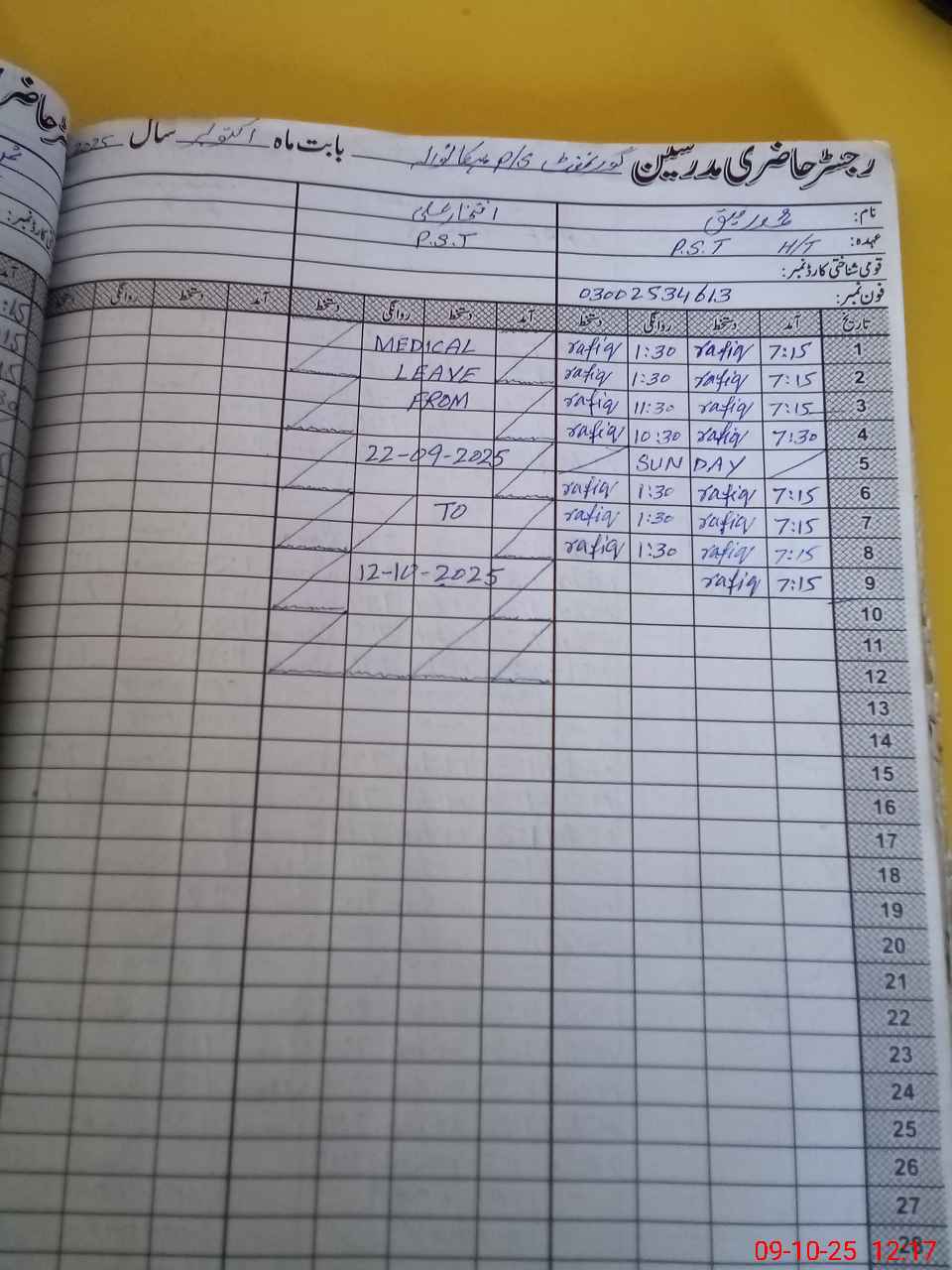 | Name: MU**** RA**** Designation: (School Headmaster's/Headmistress's) PST Phone/Cell Number: 03**** |