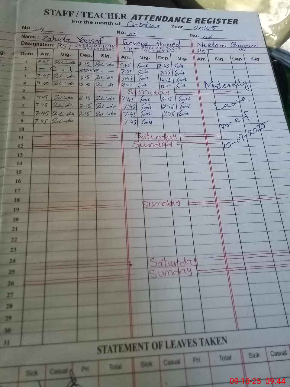 | 34**** | Ne**** Qa**** | PST | Regular | 0 | 0 | 16 | 16 | 0 | 0 | 0 | 0 | 0 | Absent (Un-Authorized) |