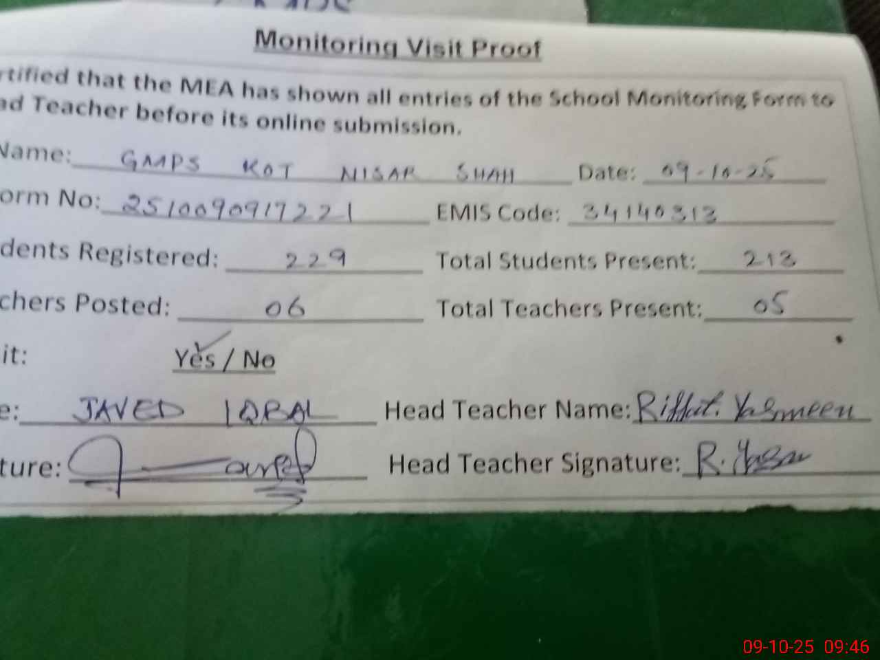 | EMIS Code: 34140313 | Name of School: GMPS KOT NISAR SHAH | |||