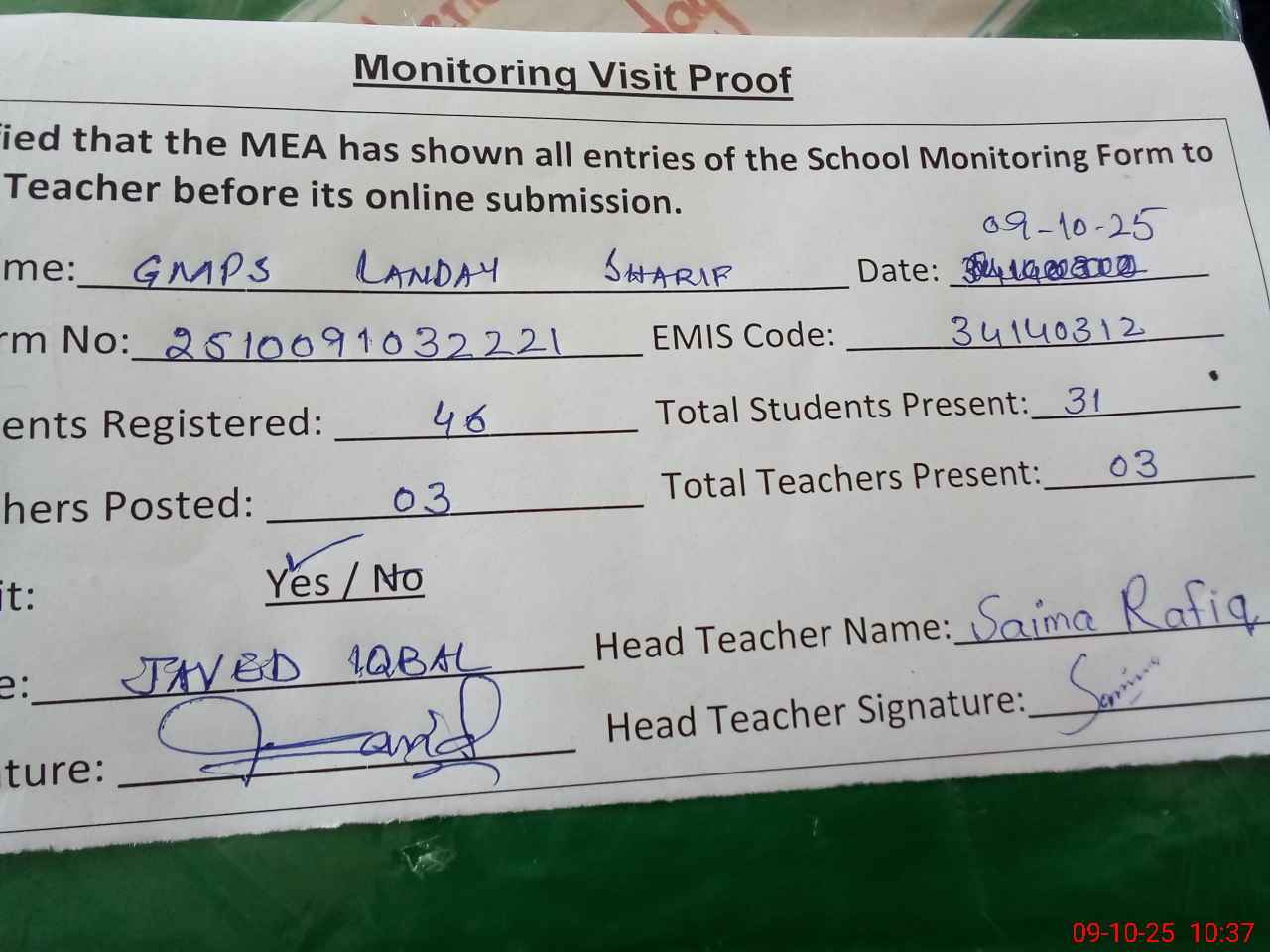 | EMIS Code: 34140312 | Name of School: GMPS LANDAY SHARIF | |||