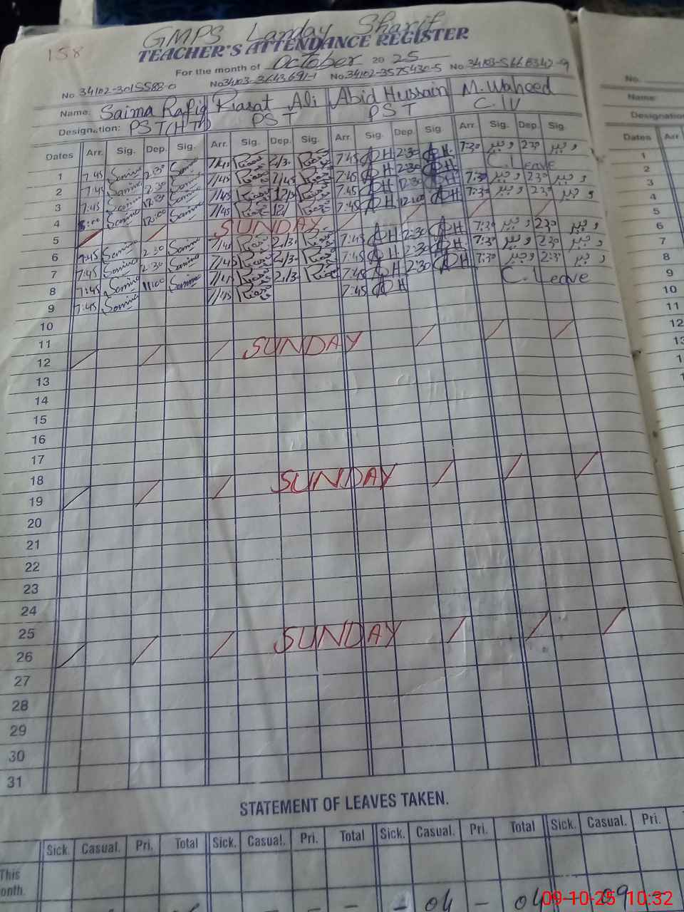 | Name: SA**** RA**** Designation: (School Headmaster's/Headmistress's) PST Phone/Cell Number: 03**** |
