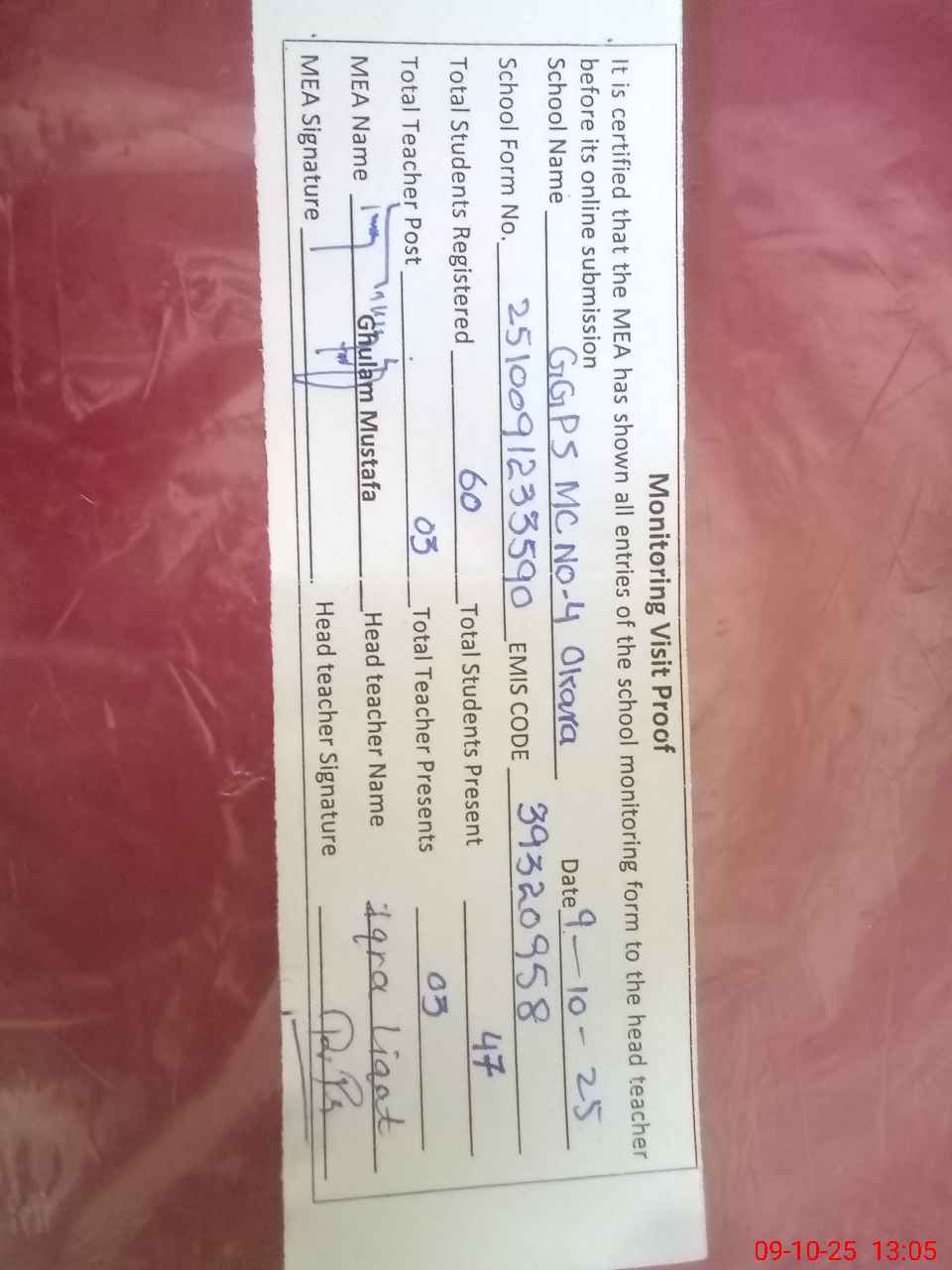 | EMIS Code: 39320958 | Name of School: GGPS MC NO. 4 UNION COMMITTEE | |||
