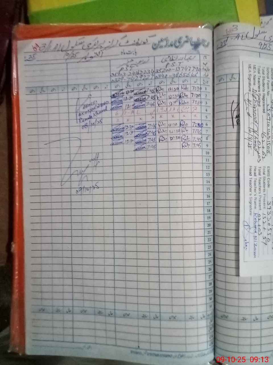 | Name: RE**** NA**** Designation: (School Headmaster's/Headmistress's) PST Phone/Cell Number: 03**** |