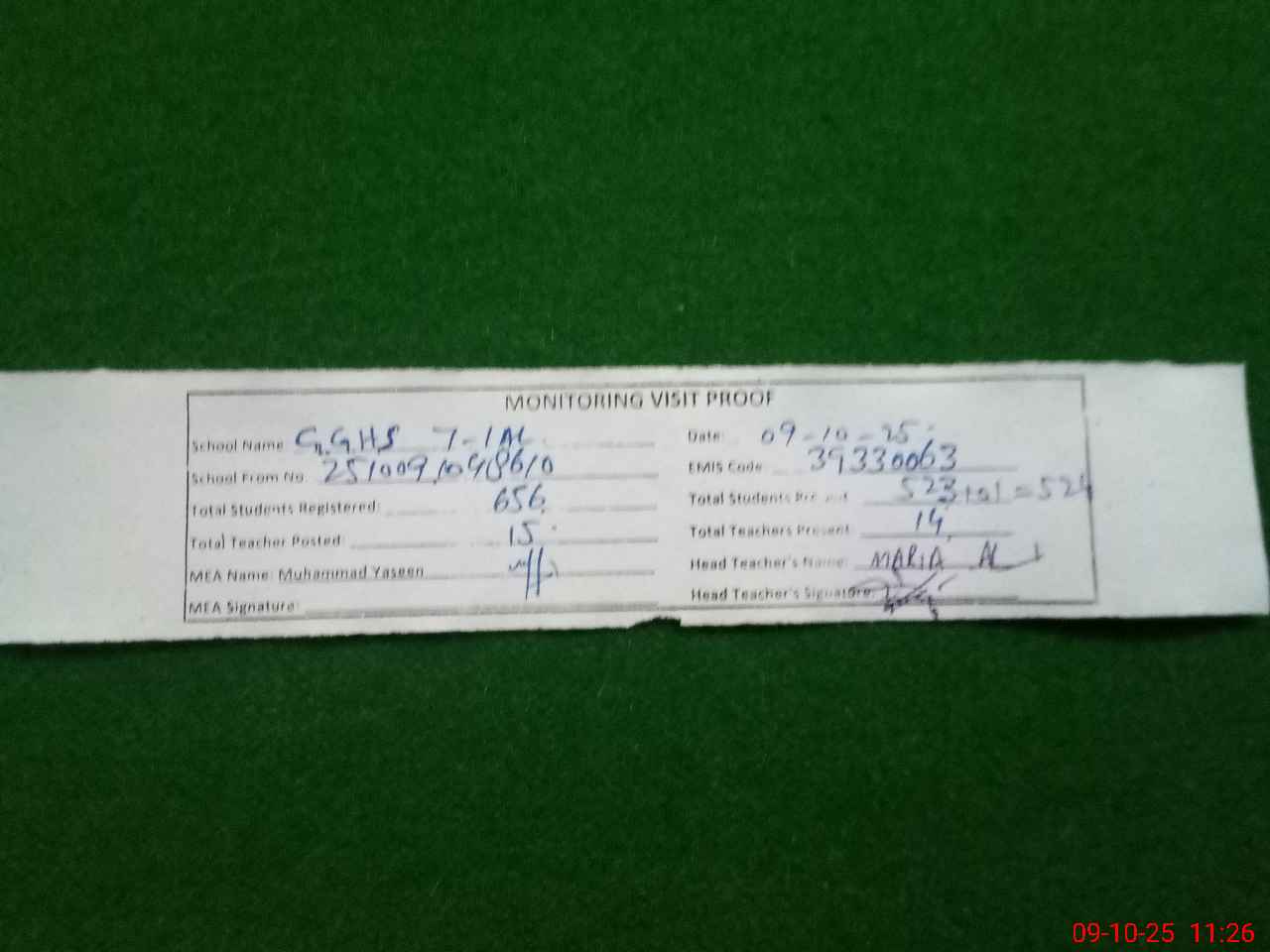 | Monitoring Date: 09-10-2025 | Start Time: 09-10-2025 10:48 AM | End Time: 09-10-2025 11:28 AM | Name of MEA: MU**** YA**** | |