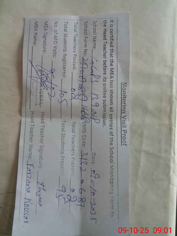 | EMIS Code: 31320681 | Name of School: GGPS CHAK 139/NP | |||