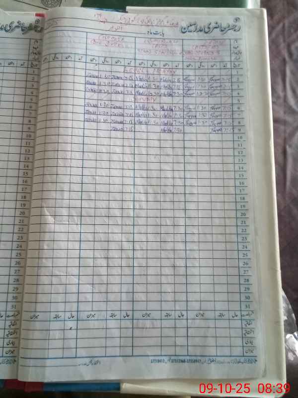 | CNIC | Full Name | Designation | R/C | Absence During Last Calender Month |