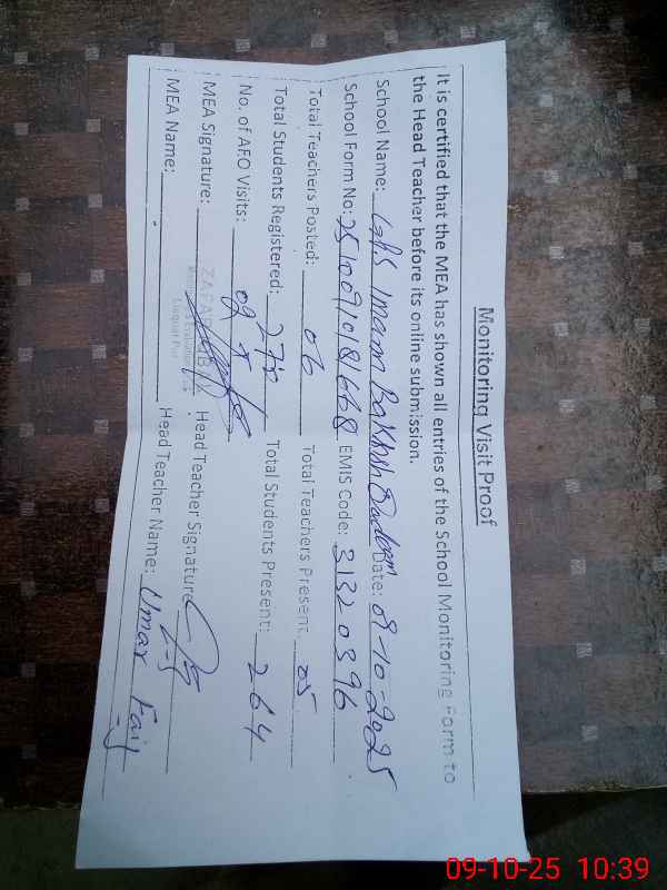 | EMIS Code: 31320396 | Name of School: GPS IMAM BAKHSH QADEEM | |||
