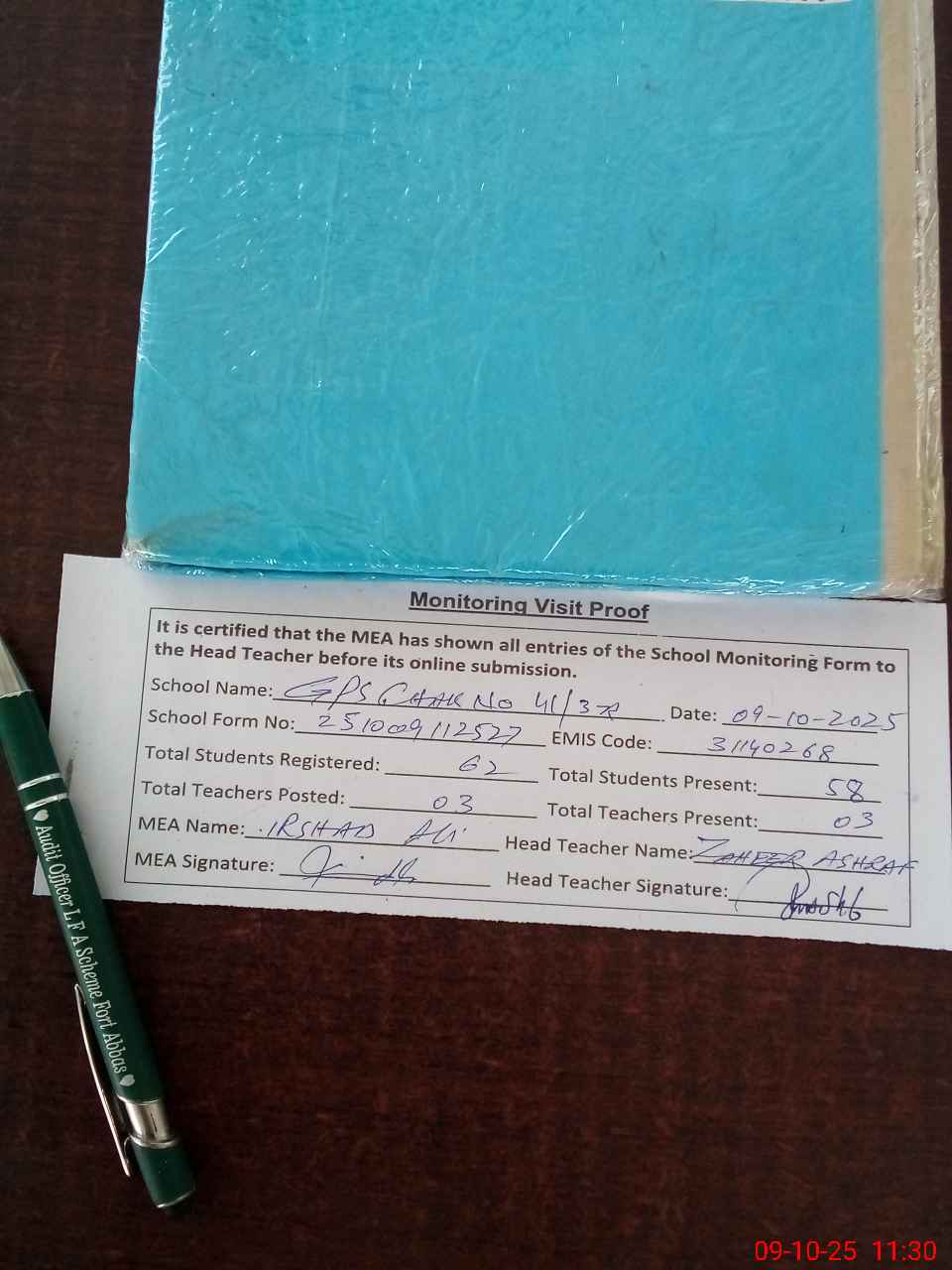 | EMIS Code: 31140268 | Name of School: GPS CHAK NO.41/3-R | |||