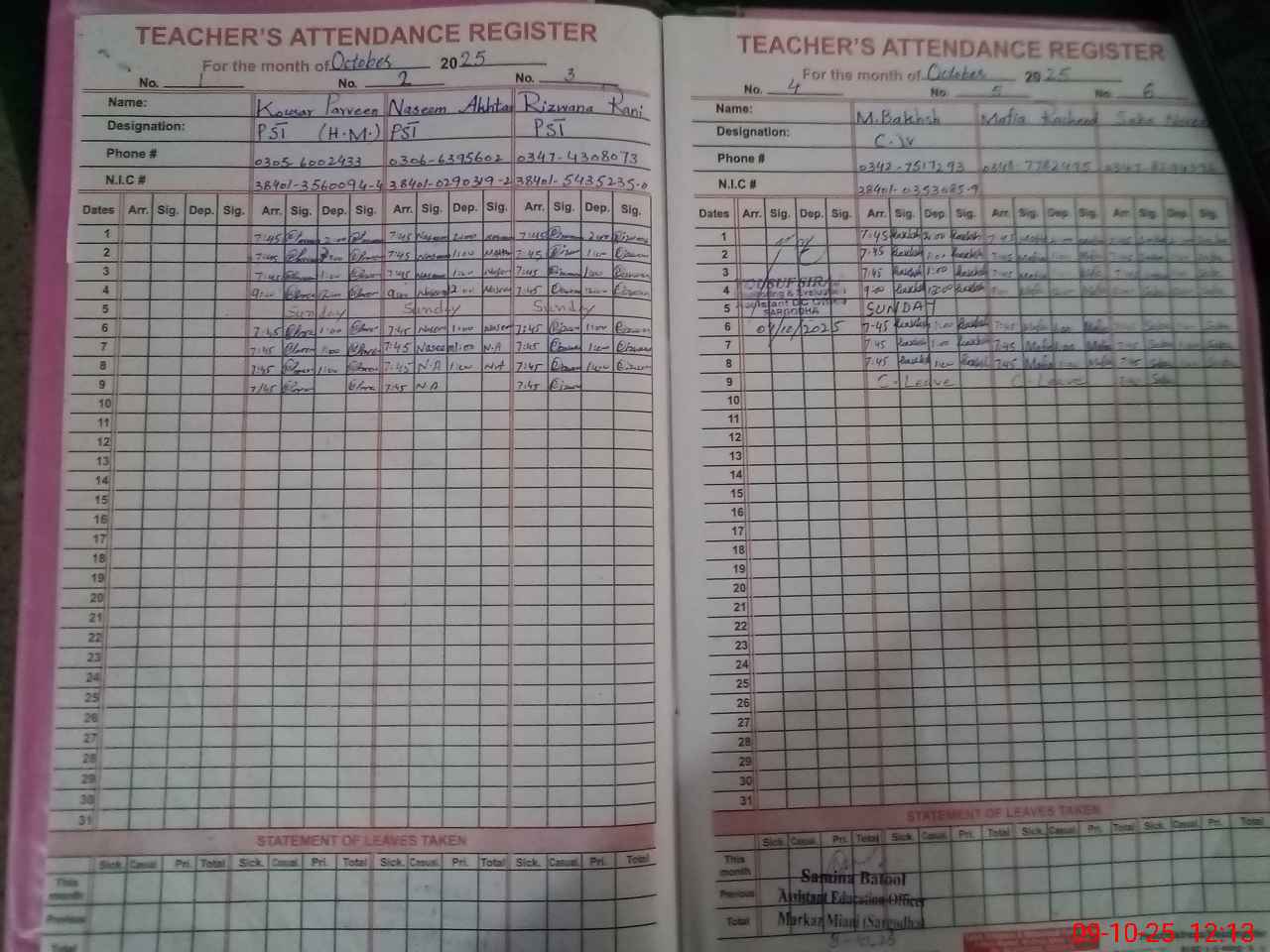 | Name: KA**** PA**** Designation: (School Headmaster's/Headmistress's) PST Phone/Cell Number: 03**** |