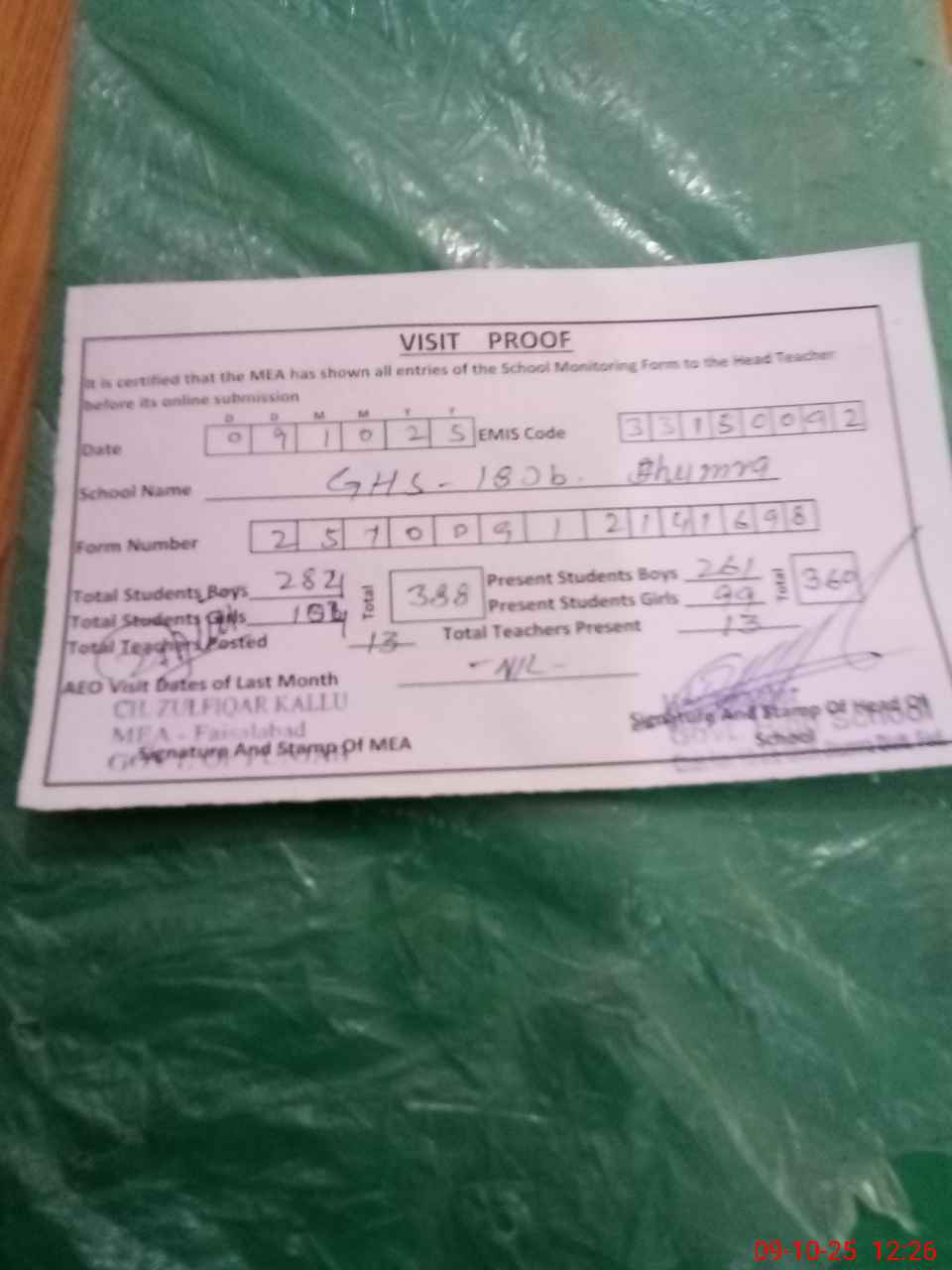 | EMIS Code: 33150092 | Name of School: GHS CHAK JHUMRA 18 JB | |||