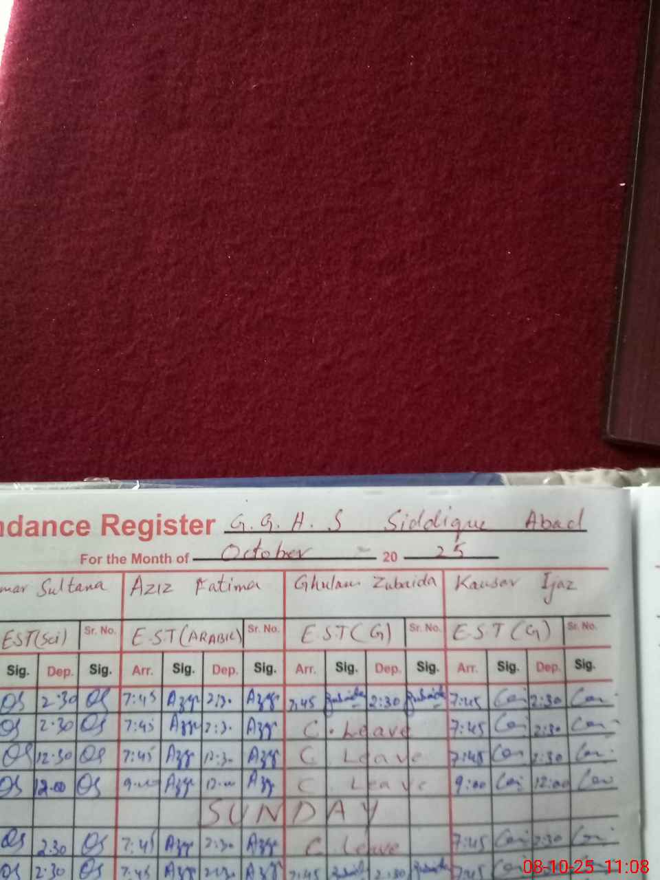 | CNIC | Full Name | Designation | R/C | Absence During Last Calender Month |