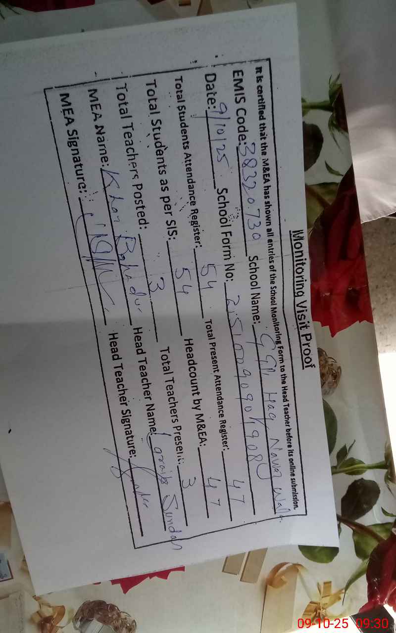 | EMIS Code: 38320730 | Name of School: GGPS HAQ NAWAZ WALA | |||