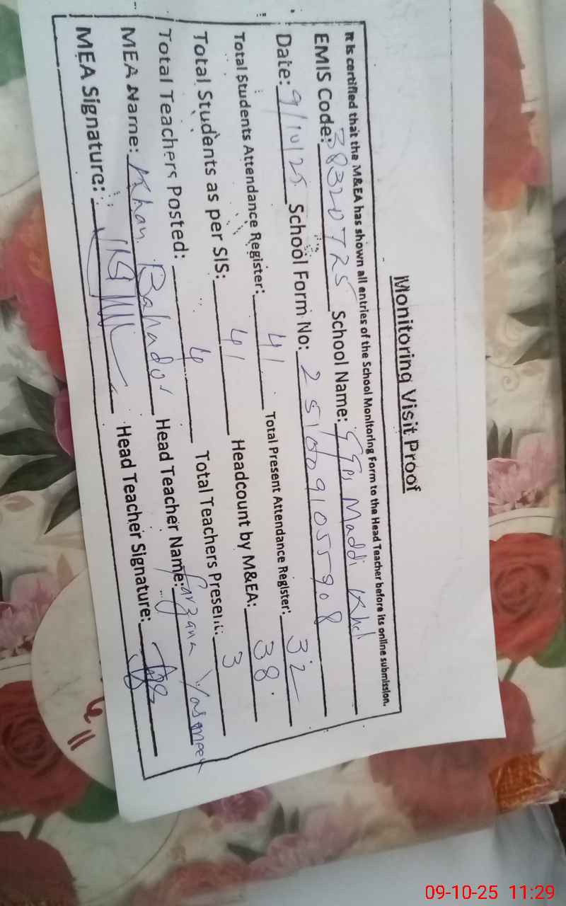 | EMIS Code: 38320725 | Name of School: GGPS MADI KHEL NO. 2 | |||